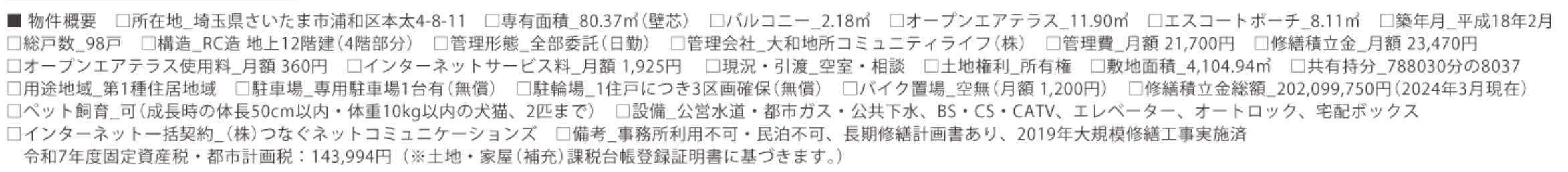 さいたま市中古マンションの詳細資料はお問い合わせください。