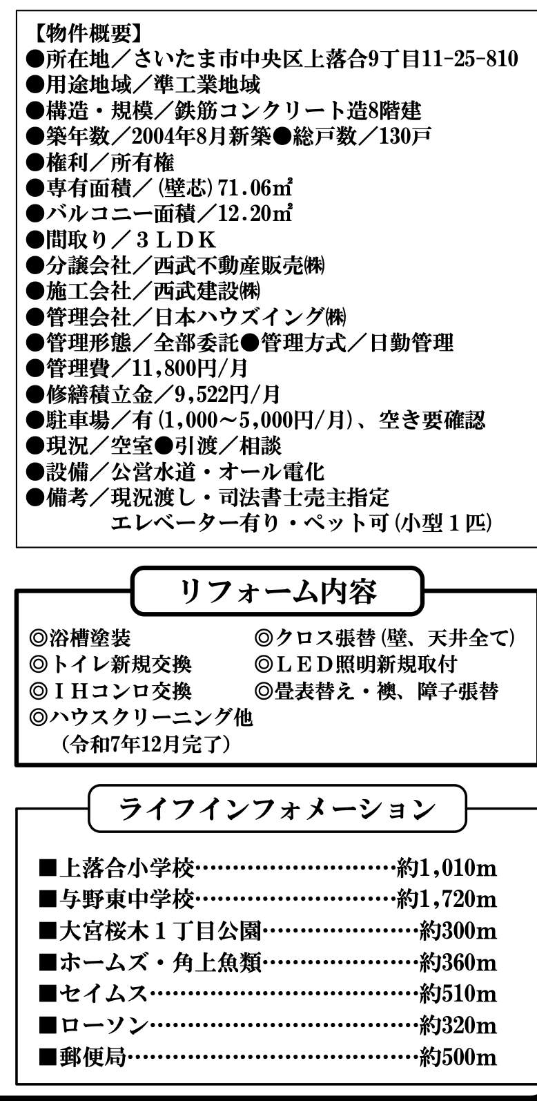 さいたま市中古マンションの詳細資料はお問い合わせください。
