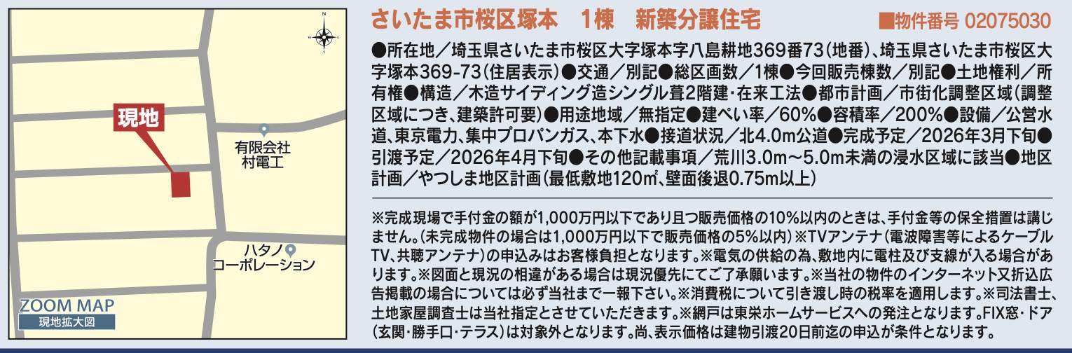 | 所在地 | 埼玉県さいたま市桜区大字塚本369-73 新築戸建 |