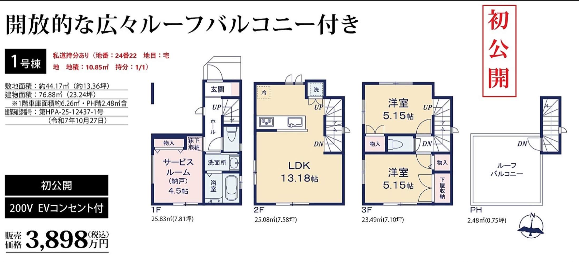 所在地 埼玉県川口市芝2丁目24-12 新築戸建 仲介手数料無料 3898万円 更にお祝金最大20万円プレゼント付 蕨駅歩14分