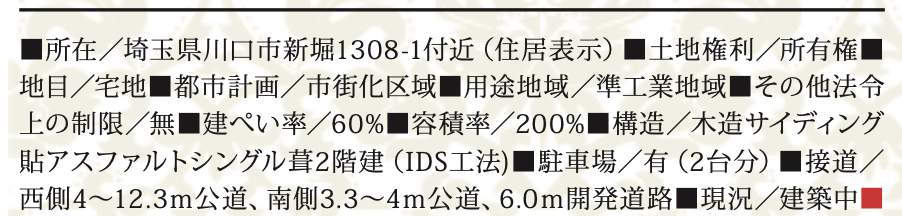 | 所在地 | 埼玉県川口市大字新堀1308-1 新築戸建 仲介手数料無料 3590万円 更にお祝金最大20万円プレゼント付 草加駅歩分 |
