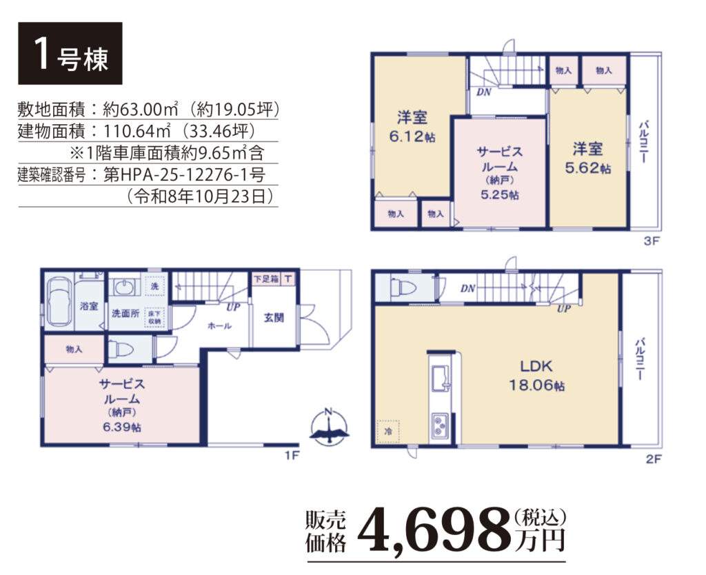 川口市大字里 新築戸建 仲介手数料無料 4698万円 更にお祝金最大20万円プレゼント付 鳩ヶ谷駅歩7分 新築戸建