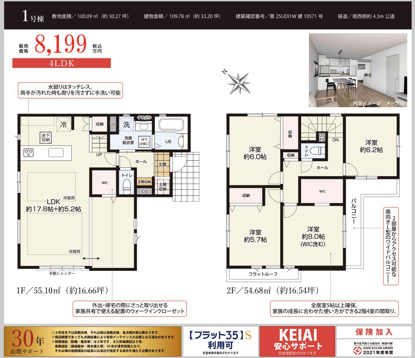 さいたま市南区白幡6丁目 新築戸建 仲介手数料無料 8199万円 2階建土地30坪南向き! 更にお祝金最大20万円プレゼント付 武蔵浦和駅歩15分 新築戸建