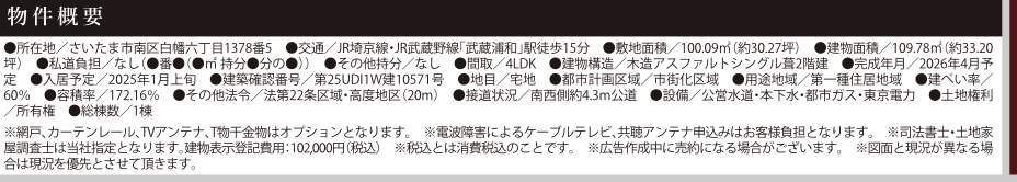 さいたま市南区白幡6丁目 新築戸建 仲介手数料無料 6980万円より4棟 更にお祝金最大20万円プレゼント付 武蔵浦和駅歩17分 新築戸建さいたま市南区白幡6丁目 新築戸建 仲介手数料無料 6980万円より4棟 更にお祝金最大20万円プレゼント付 武蔵浦和駅歩17分 新築戸建