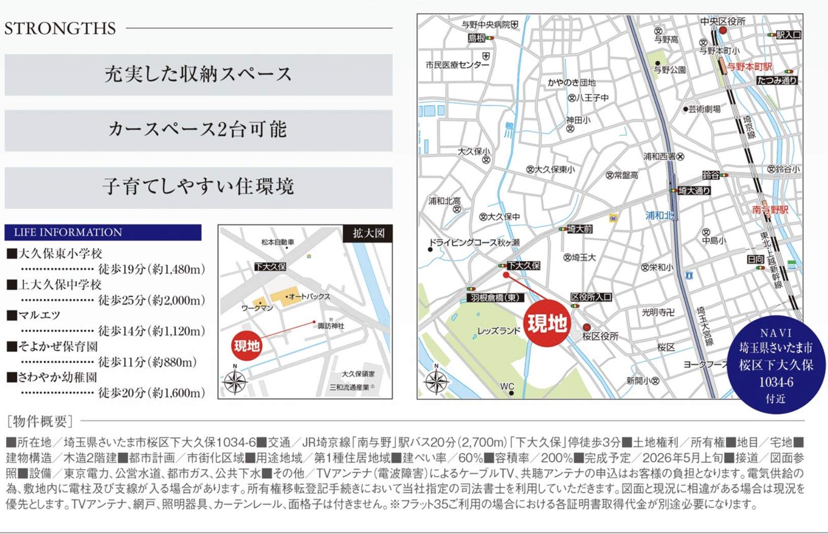 さいたま市桜区大字下大久保 新築戸建 仲介手数料無料 4290万円 更にお祝金最大20万円プレゼント付 南与野駅 バス(下大久保 乗20分 停歩3分) 新築戸建