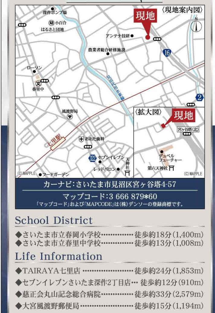 | 所在地 | 埼玉県さいたま市見沼区宮ヶ谷塔4丁目57 新築戸建 仲介手数料無料 3330万円 更にお祝金最大20万円プレゼント付 七里駅歩20分 |