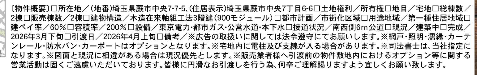 | 所在地 | 埼玉県蕨市中央7丁目6-6 新築戸建 仲介手数料無料 5480万円 更にお祝金最大20万円プレゼント付 蕨駅歩7分 |