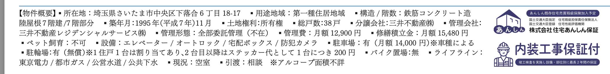 | 所在地 | 埼玉県さいたま市中央区下落合6丁目18-17 与野パーク・ホームズ中古マンション 仲介手数料無料 更にお祝金最大20万円プレゼント付 与野パーク・ホームズ |