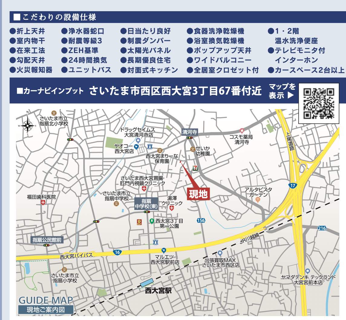 | 所在地 | 埼玉県さいたま市西区西大宮3丁目67 新築戸建 仲介手数料無料 4698万円 更にお祝金最大20万円プレゼント付 西大宮駅歩13分 |