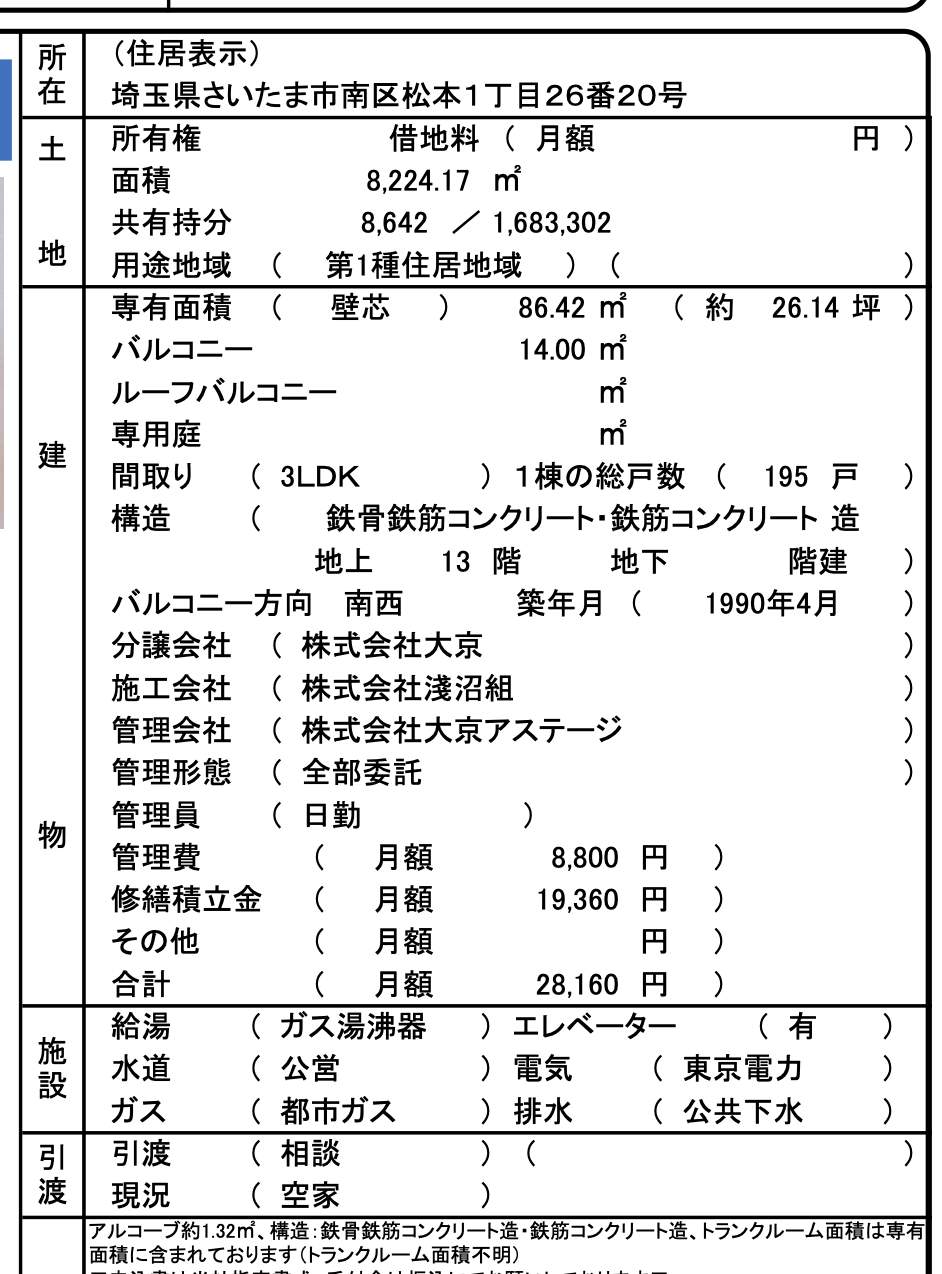 | 所在地 | 埼玉県さいたま市南区松本1丁目26-20 ライオンズガーデン西浦和中古マンション 仲介手数料無料 更にお祝金最大20万円プレゼント付 ライオンズガーデン西浦和 |
