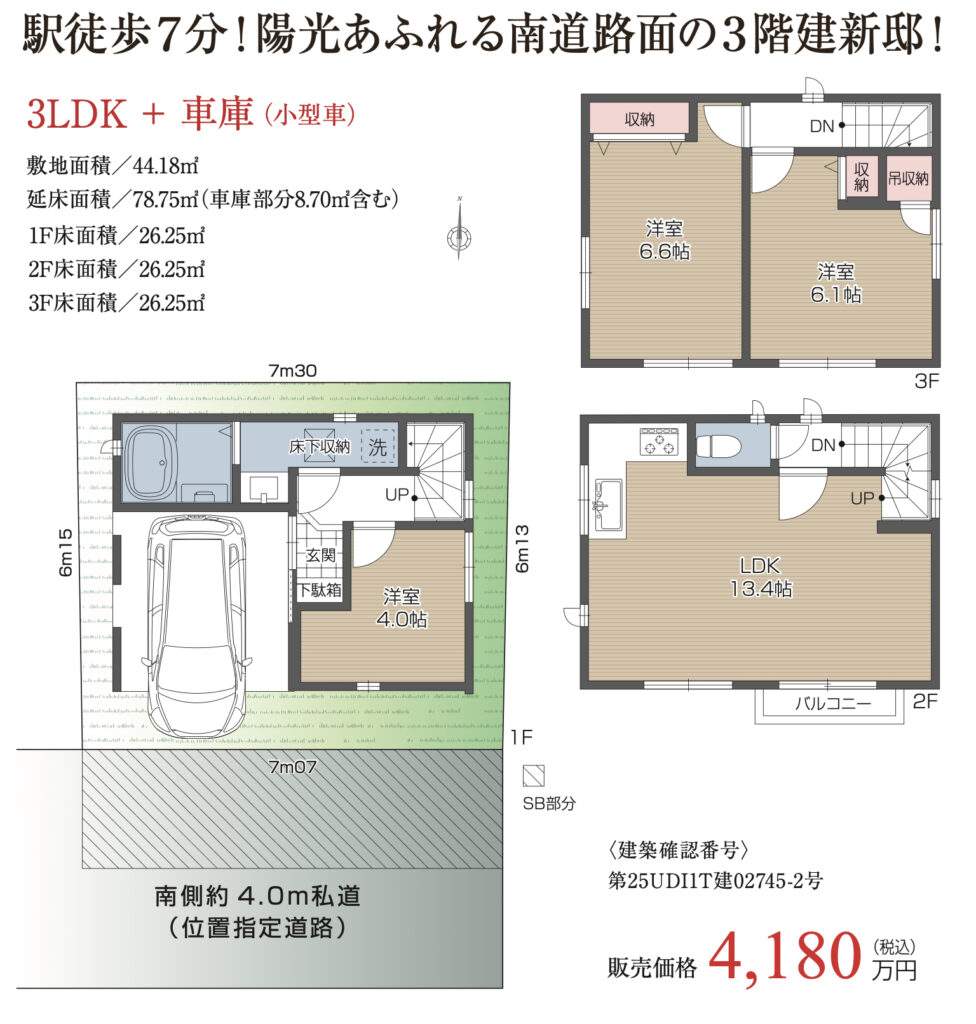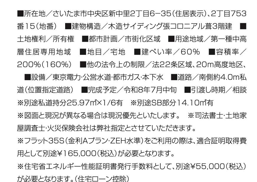 | 所在地 | 埼玉県さいたま市中央区新中里2丁目6-35 新築戸建 仲介手数料無料 4180万円 更にお祝金最大20万円プレゼント付 南与野駅歩7分 |