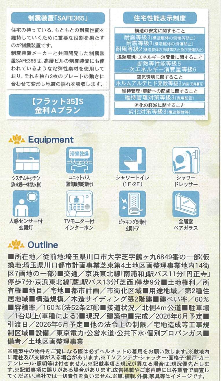 川口市大字芝 新築戸建 仲介手数料無料 3880万円 更にお祝金最大20万円プレゼント付 南浦和駅 バス(円正寺 乗11分 停歩7分) 新築戸建