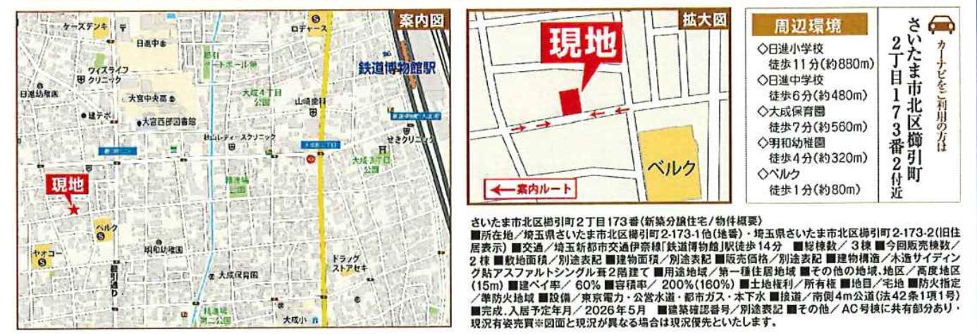所在地 埼玉県さいたま市北区櫛引町2丁目173-2 新築戸建 仲介手数料無料 4990万円 更にお祝金最大20万円プレゼント付 鉄道博物館(大成)駅歩14分