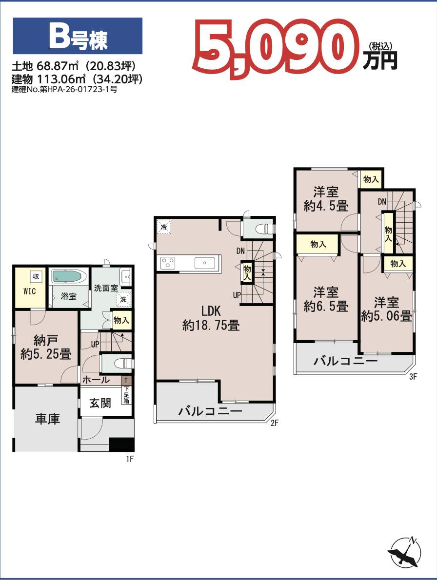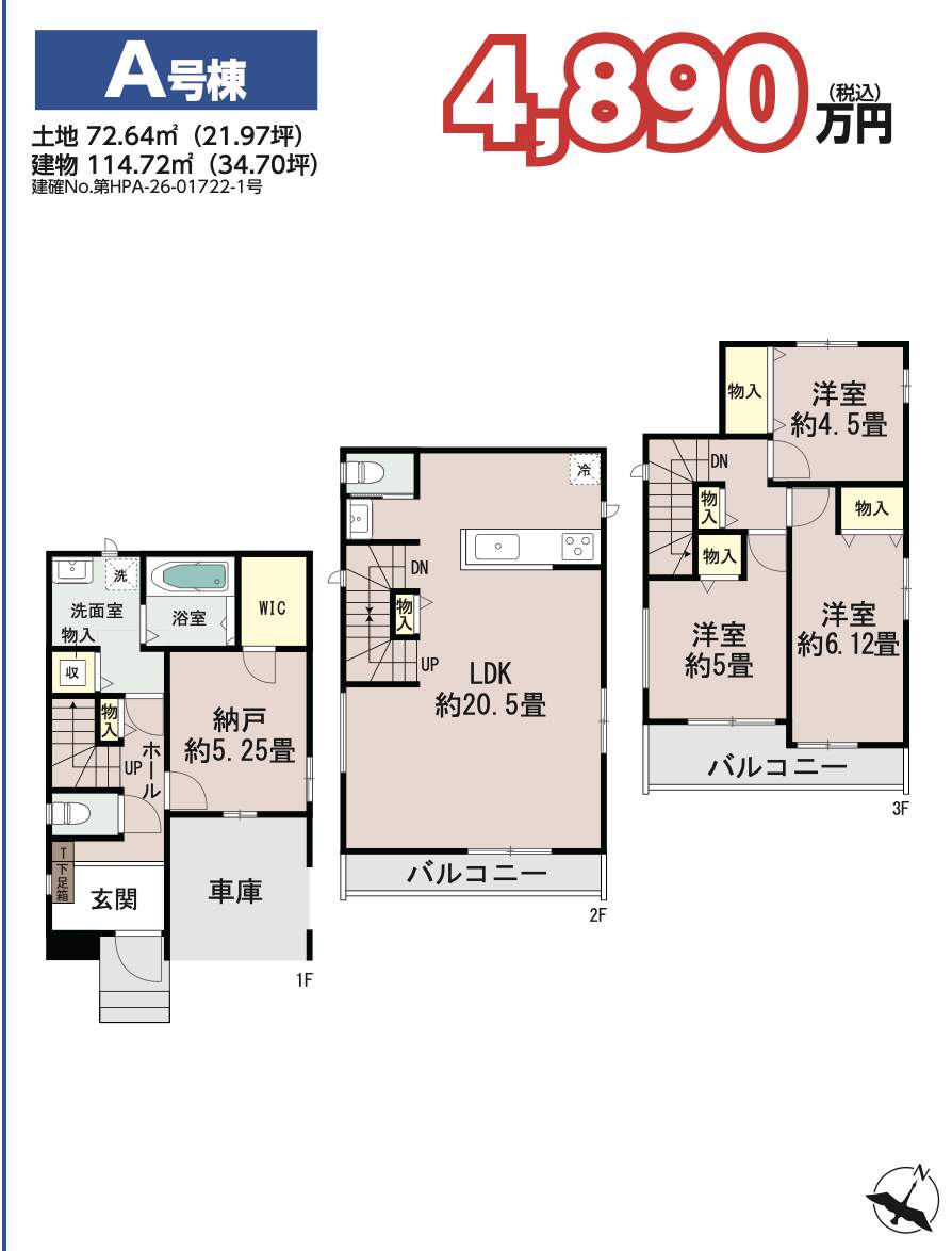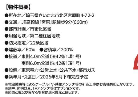 | 所在地 | 埼玉県さいたま市北区宮原町4丁目72-2 新築戸建 仲介手数料無料 4890万円 更にお祝金最大20万円プレゼント付 宮原駅歩9分 |