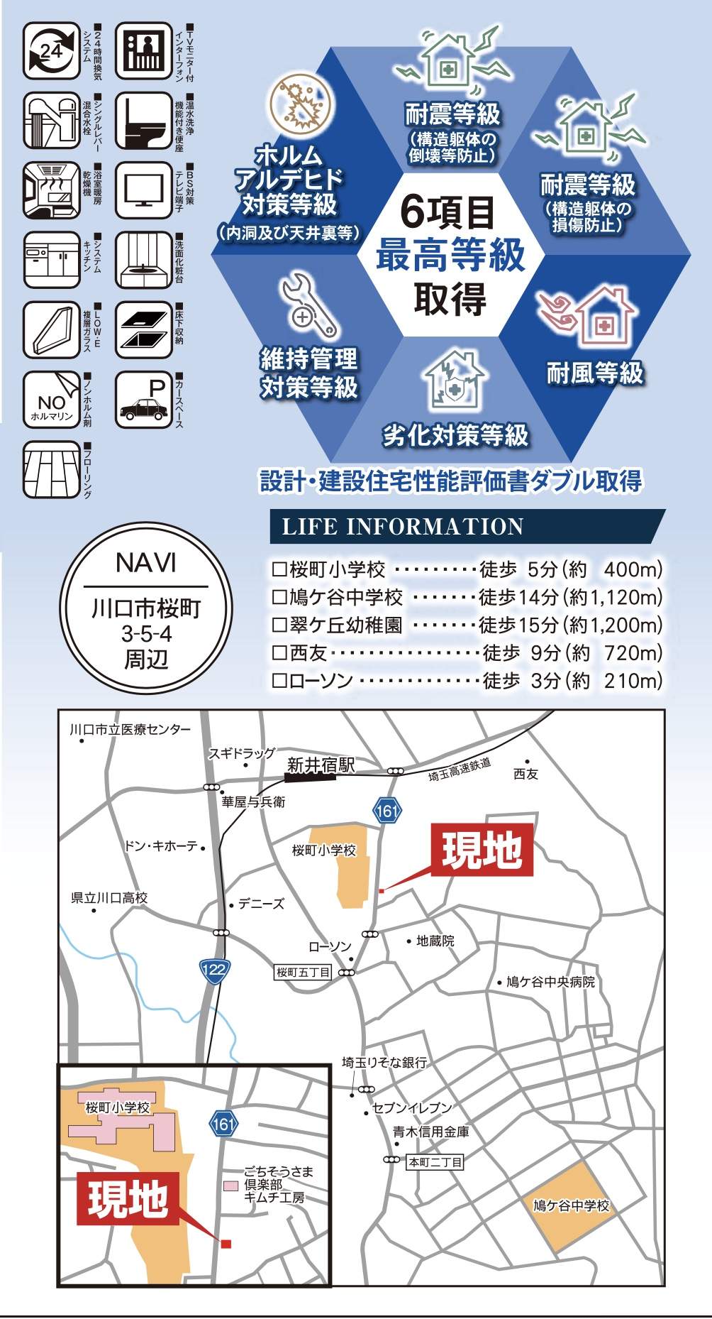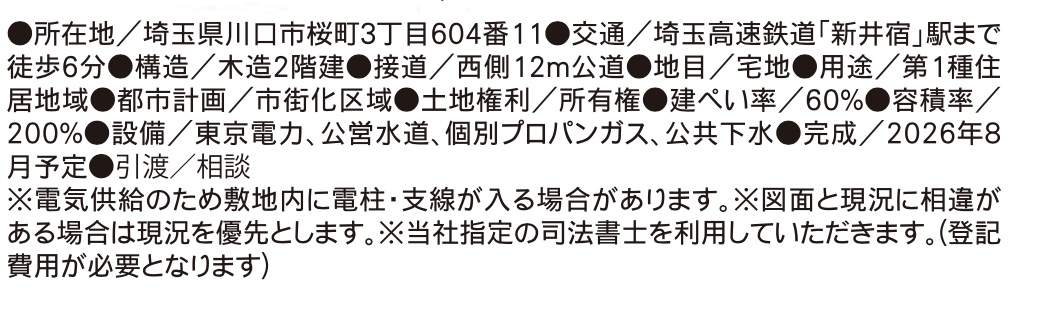 | 所在地 | 埼玉県川口市桜町3丁目5-4 新築戸建 仲介手数料無料 4299万円 更にお祝金最大20万円プレゼント付 新井宿駅歩6分 |