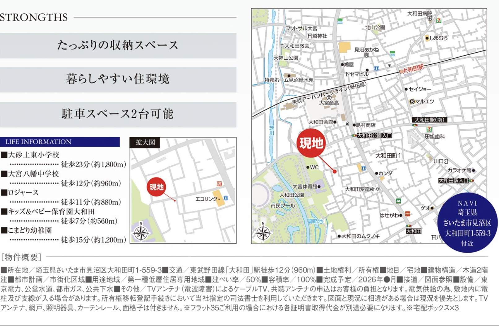 | 所在地 | 埼玉県さいたま市見沼区大和田町1丁目559-3 新築戸建 仲介手数料無料 4190万円 更にお祝金最大20万円プレゼント付 大和田駅歩12分 |