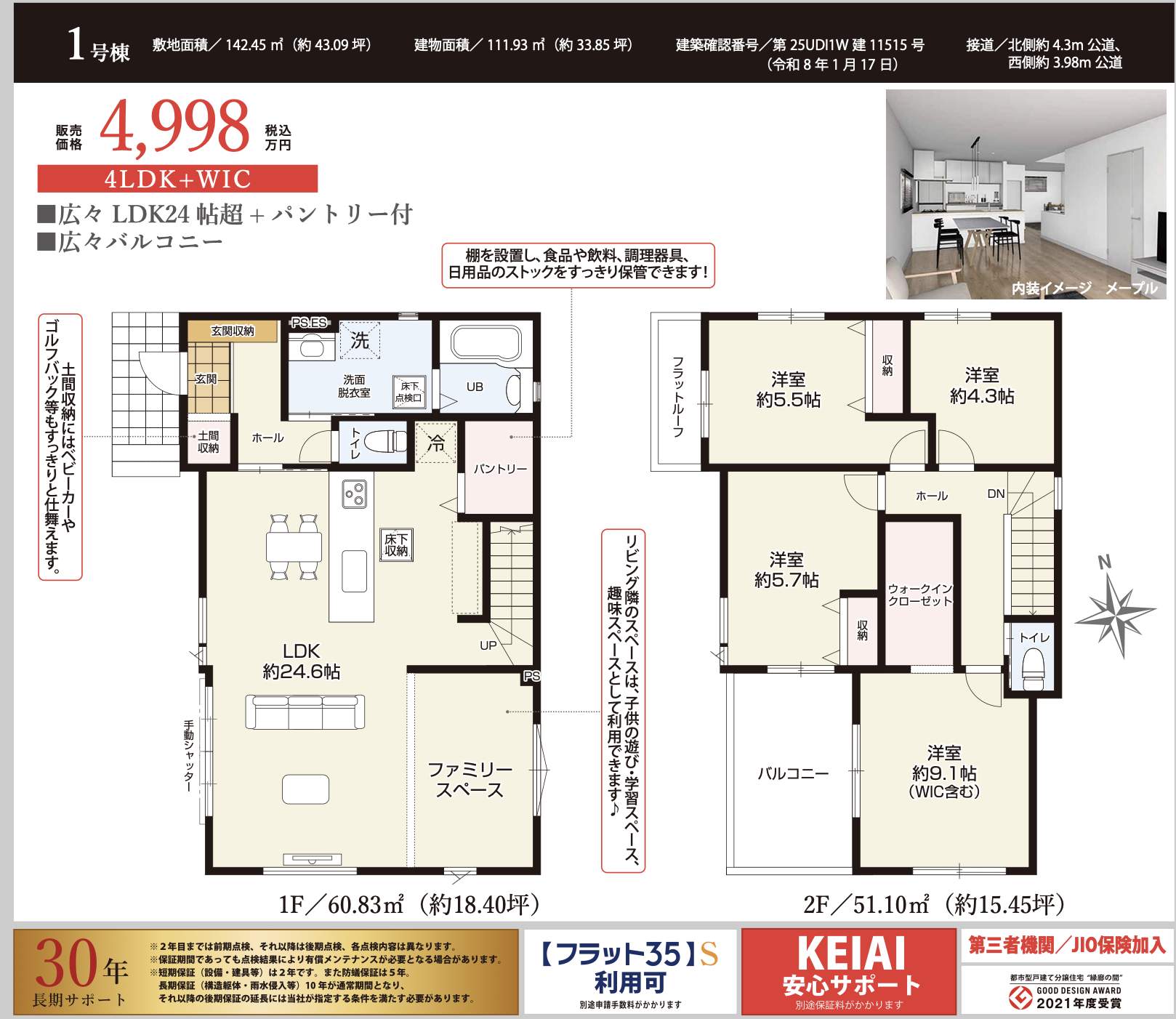 さいたま市緑区大字三室 新築戸建 仲介手数料無料 4998万円 更にお祝金最大20万円プレゼント付 北浦和駅 バス(山﨑 乗5分 停歩9分) 新築戸建