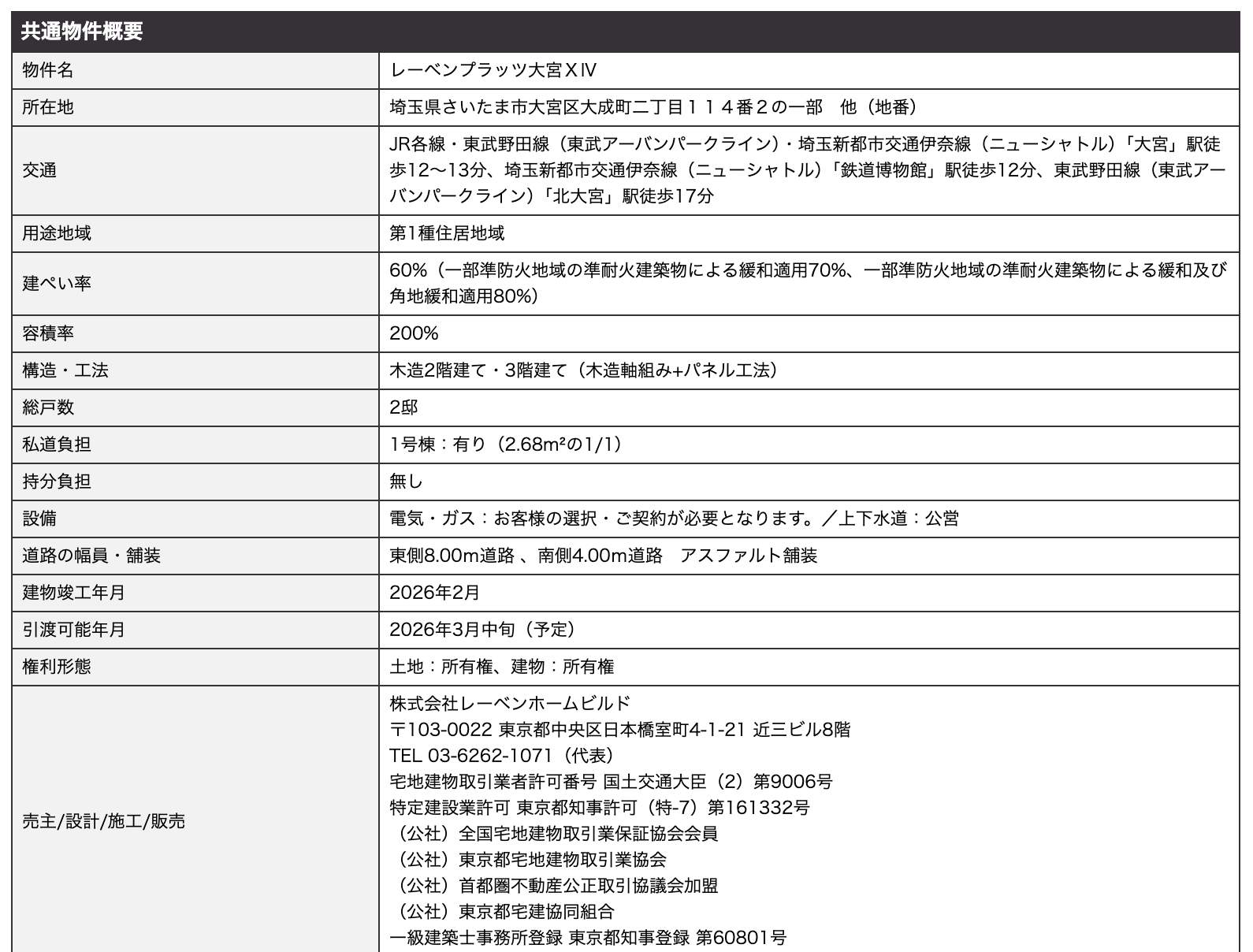 レーベンホームビルド さいたま市大宮区大成町2丁目 新築戸建 仲介手数料無料