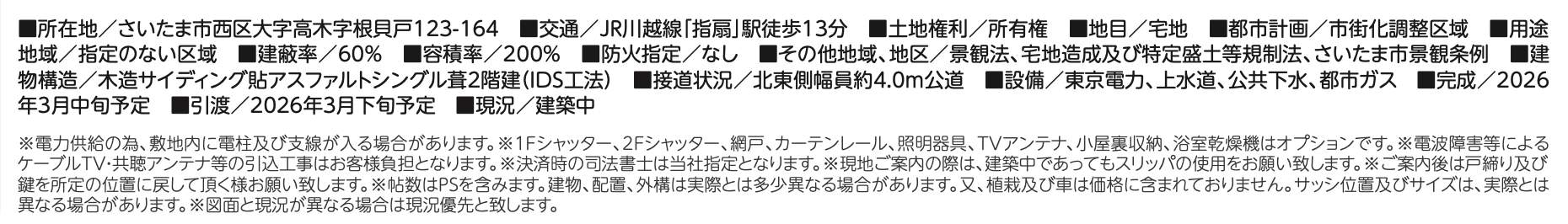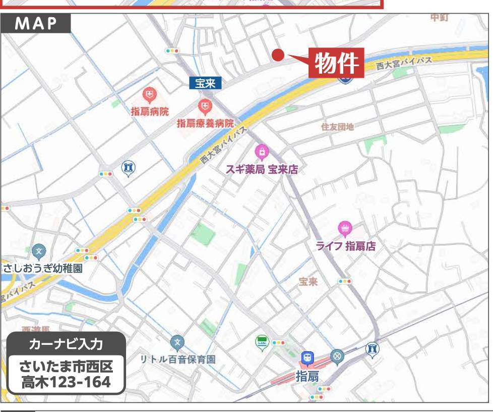 | 所在地 | 埼玉県さいたま市西区大字高木123-164 新築戸建 仲介手数料無料 3390万円 更にお祝金最大20万円プレゼント付 指扇駅歩13分 |