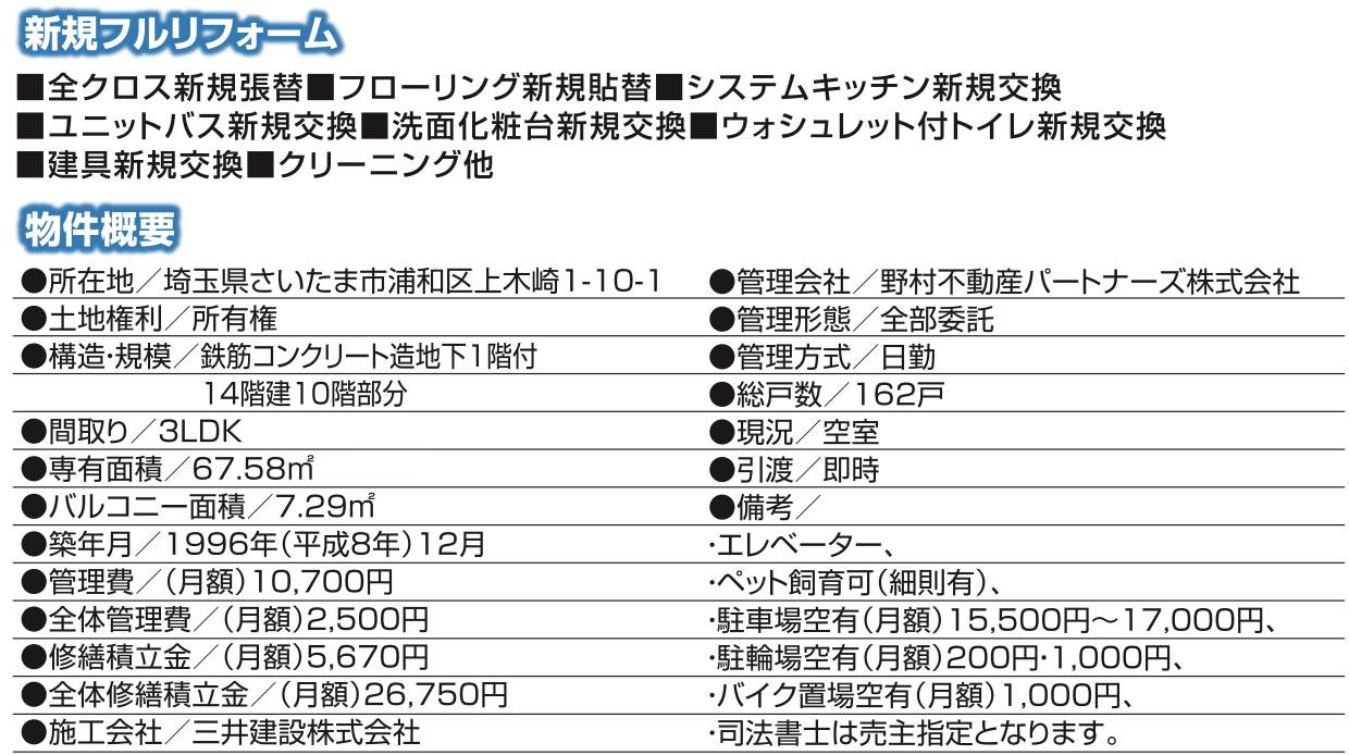 さいたま市中古マンションの詳細資料はお問い合わせください。