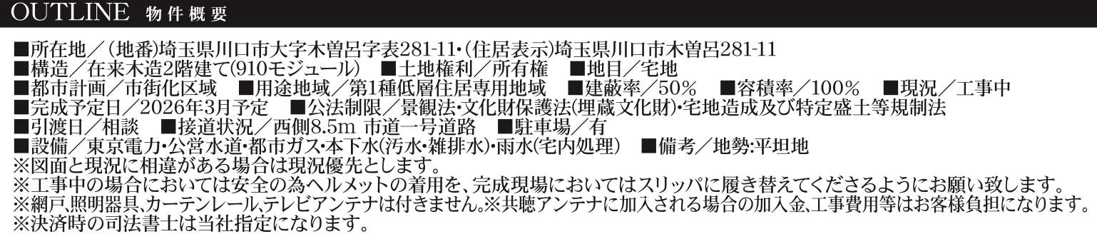 | 所在地 | 埼玉県川口市大字木曽呂281-11 新築戸建 仲介手数料無料 3180万円 更にお祝金最大20万円プレゼント付 東浦和駅歩分 |