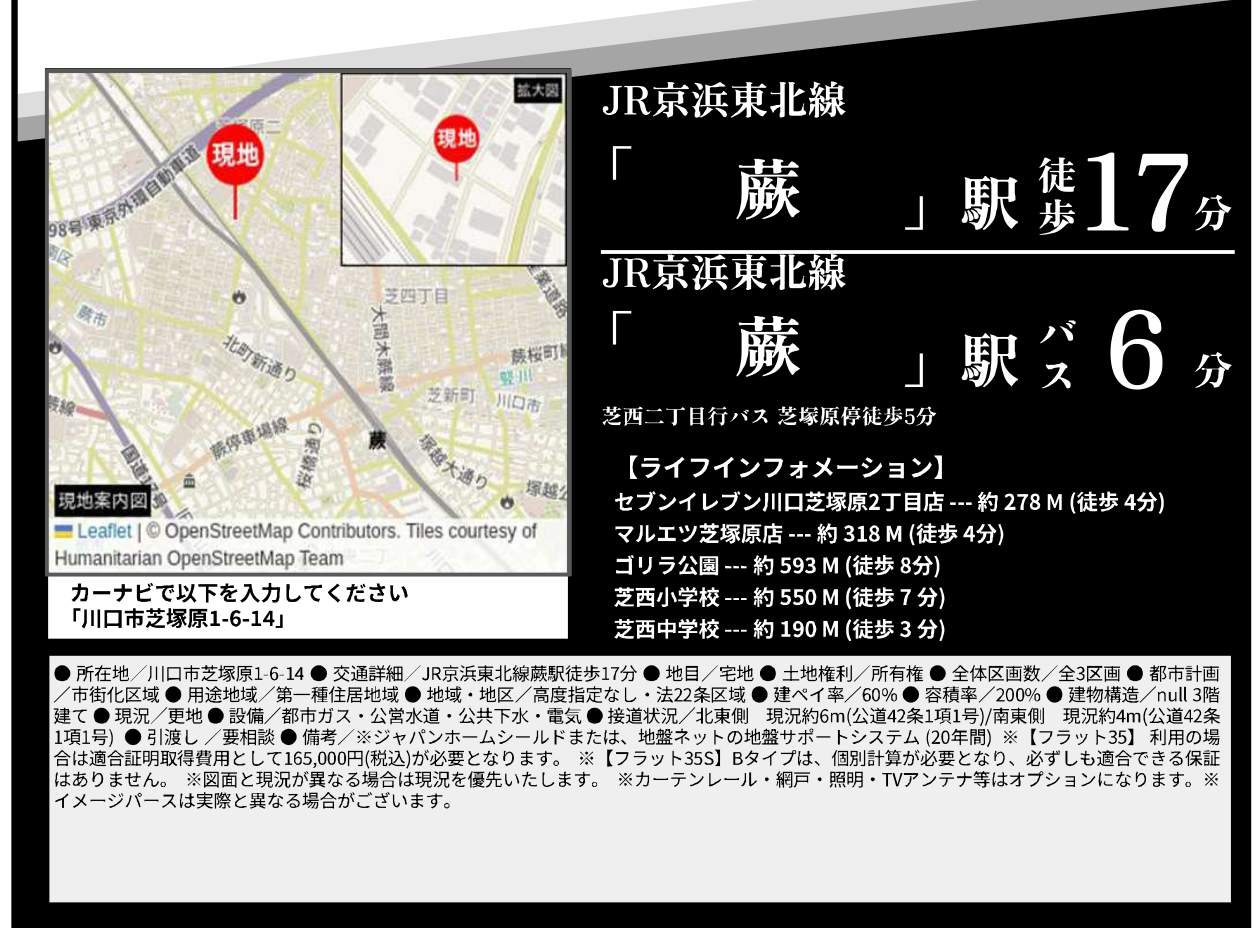 | 所在地 | 埼玉県川口市芝塚原1丁目6-14 新築戸建 仲介手数料無料 4180万円 更にお祝金最大20万円プレゼント付 蕨駅歩17分 |