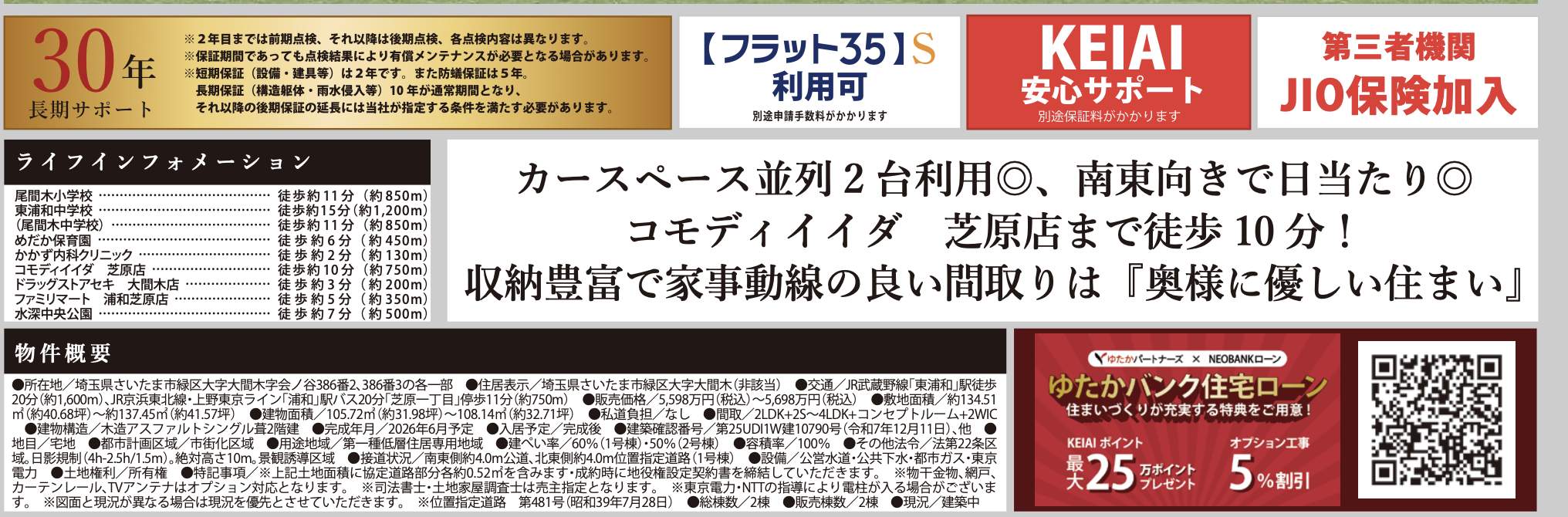| 所在地 | 埼玉県さいたま市緑区大字大間木386 新築戸建 仲介手数料無料 5598万円 更にお祝金最大20万円プレゼント付 東浦和駅歩20分 |