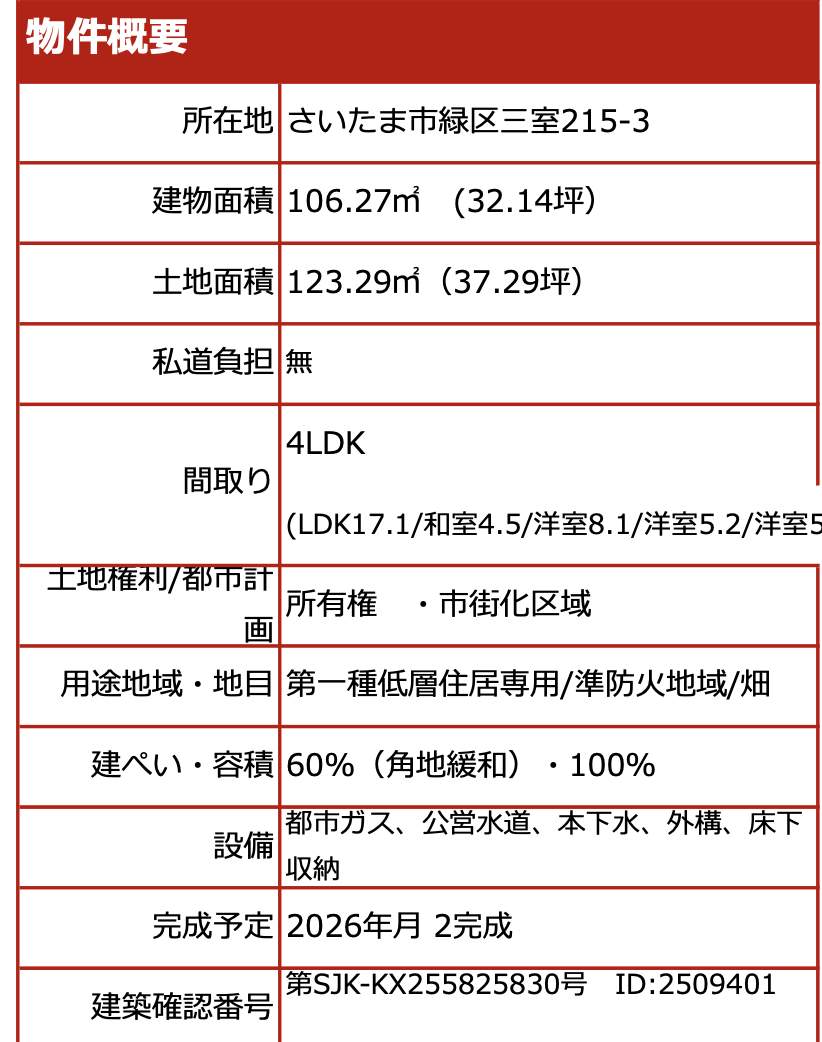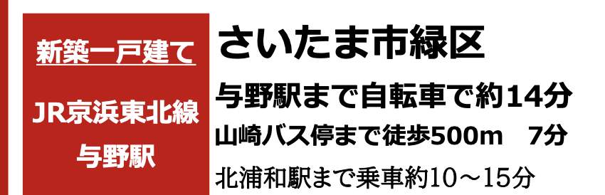| 所在地 | 埼玉県さいたま市緑区大字三室215-3 新築戸建 仲介手数料無料 4480万円 更にお祝金最大20万円プレゼント付 与野駅歩分 |