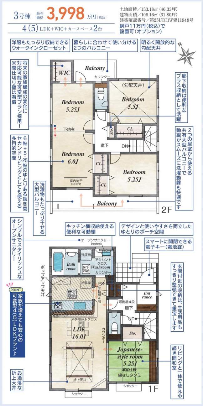 | 面積 | 105.16m² | 計測方式 | 壁芯 |