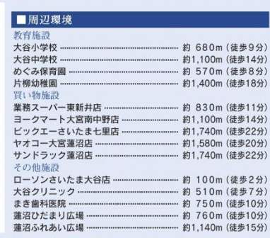 | 交通 | JR京浜東北・根岸線大宮駅 バス(向大谷 乗23分 停歩2分) |