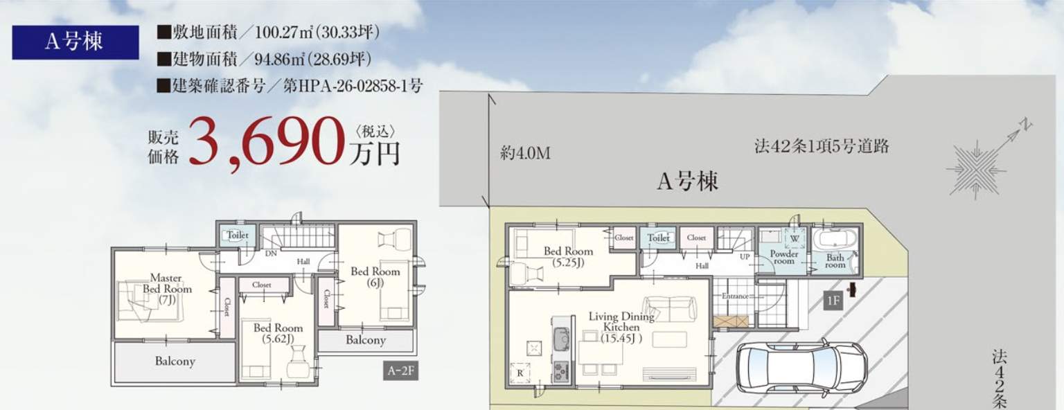 | 所在地 | 埼玉県川口市大字安行北谷629-5 新築戸建 仲介手数料無料 3490万円 更にお祝金最大20万円プレゼント付 草加駅歩分 |