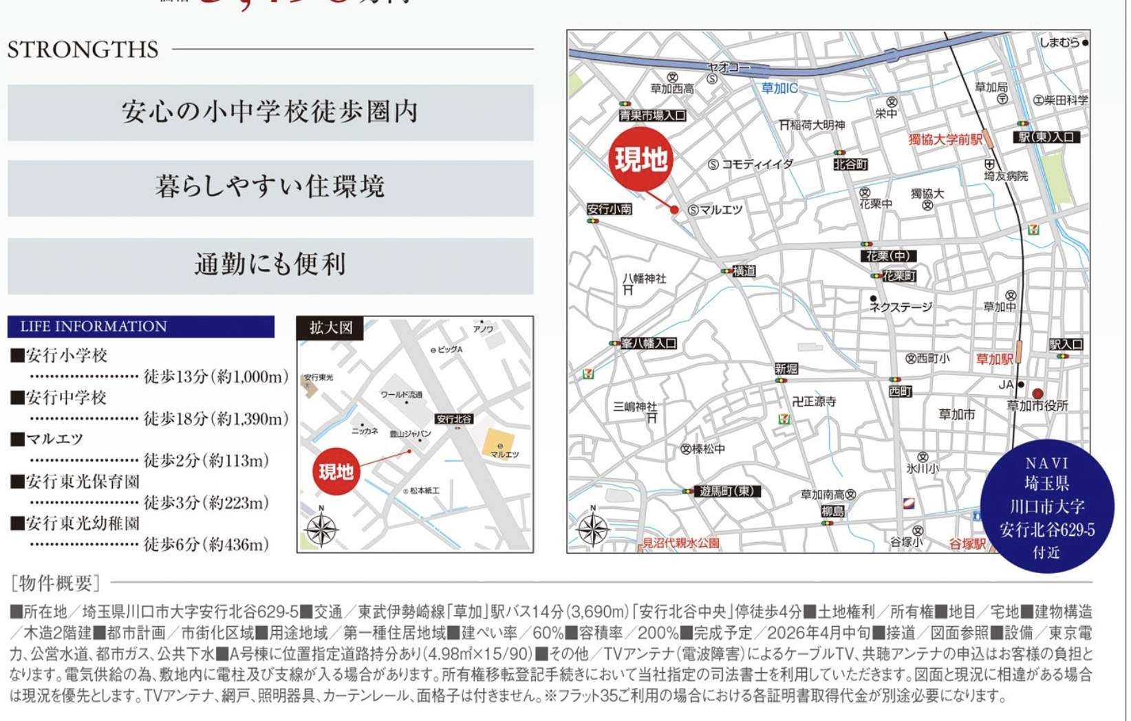 | 交通 | 東武伊勢崎線草加駅 バス(安行北谷中央 乗14分 停歩4分) |