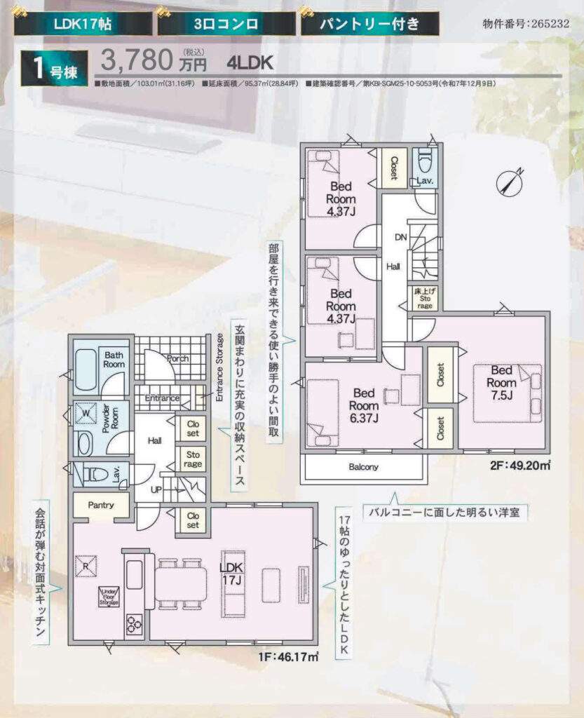 | 面積 | 95.37m² | 計測方式 | 壁芯 |