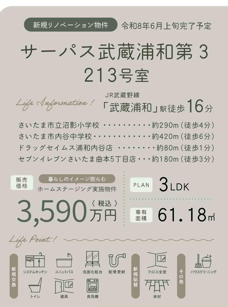 | 所在地 | 埼玉県さいたま市南区曲本5丁目9-12 サーパス武蔵浦和第3 仲介手数料無料 中古マンション更にお祝金最大20万円プレゼント付 サーパス武蔵浦和第3 |
