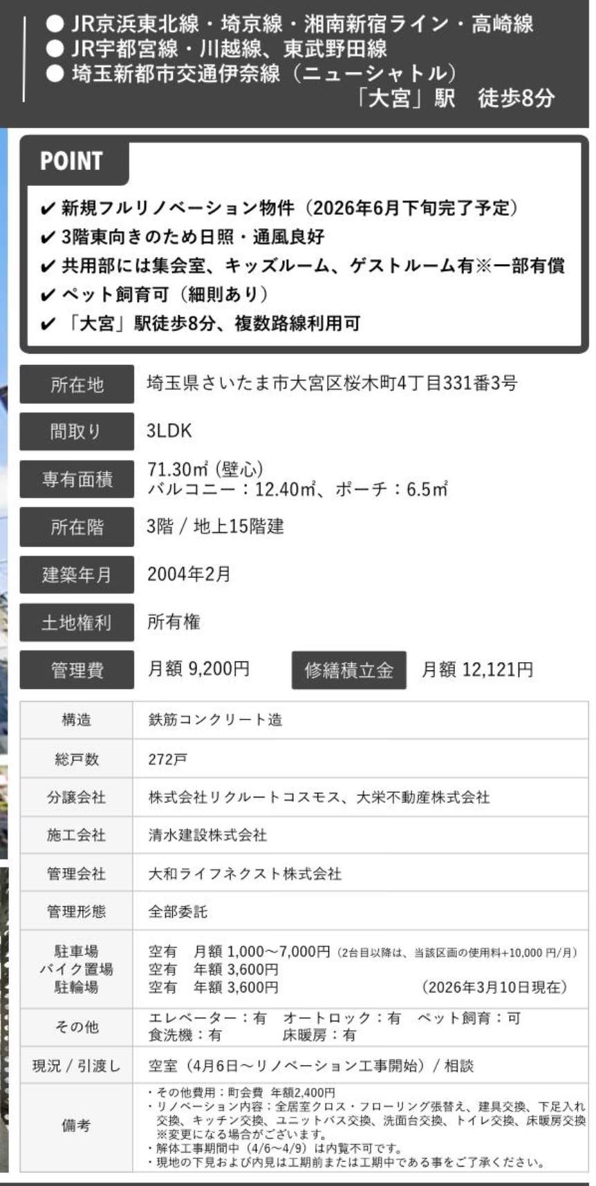 さいたま市中古マンションの詳細資料はお問い合わせください。