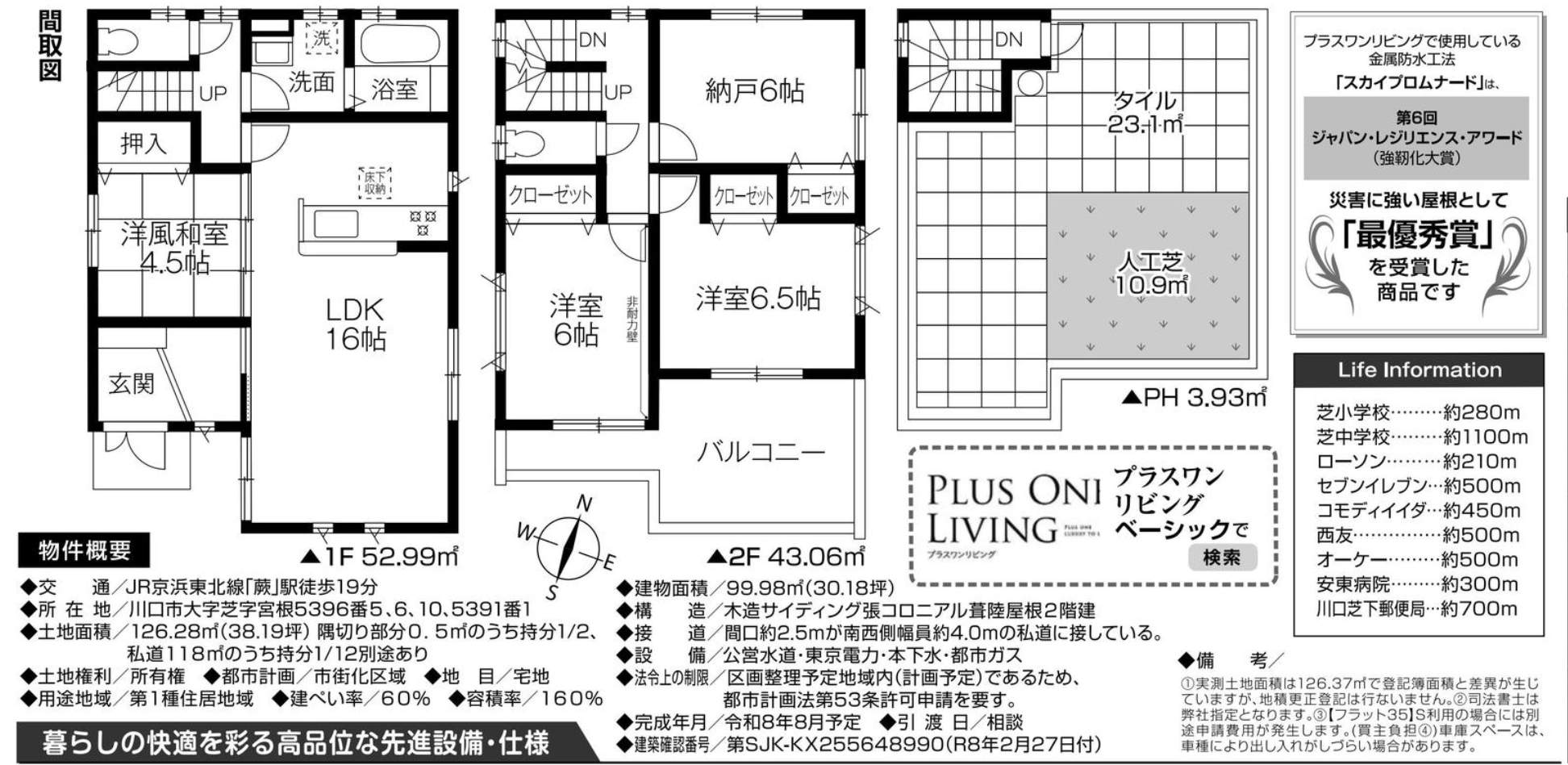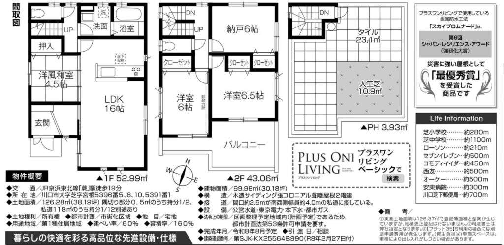川口市大字芝 新築戸建 仲介手数料無料 4980万円 更にお祝金最大20万円プレゼント付 蕨駅歩19分新築戸建 屋上付き