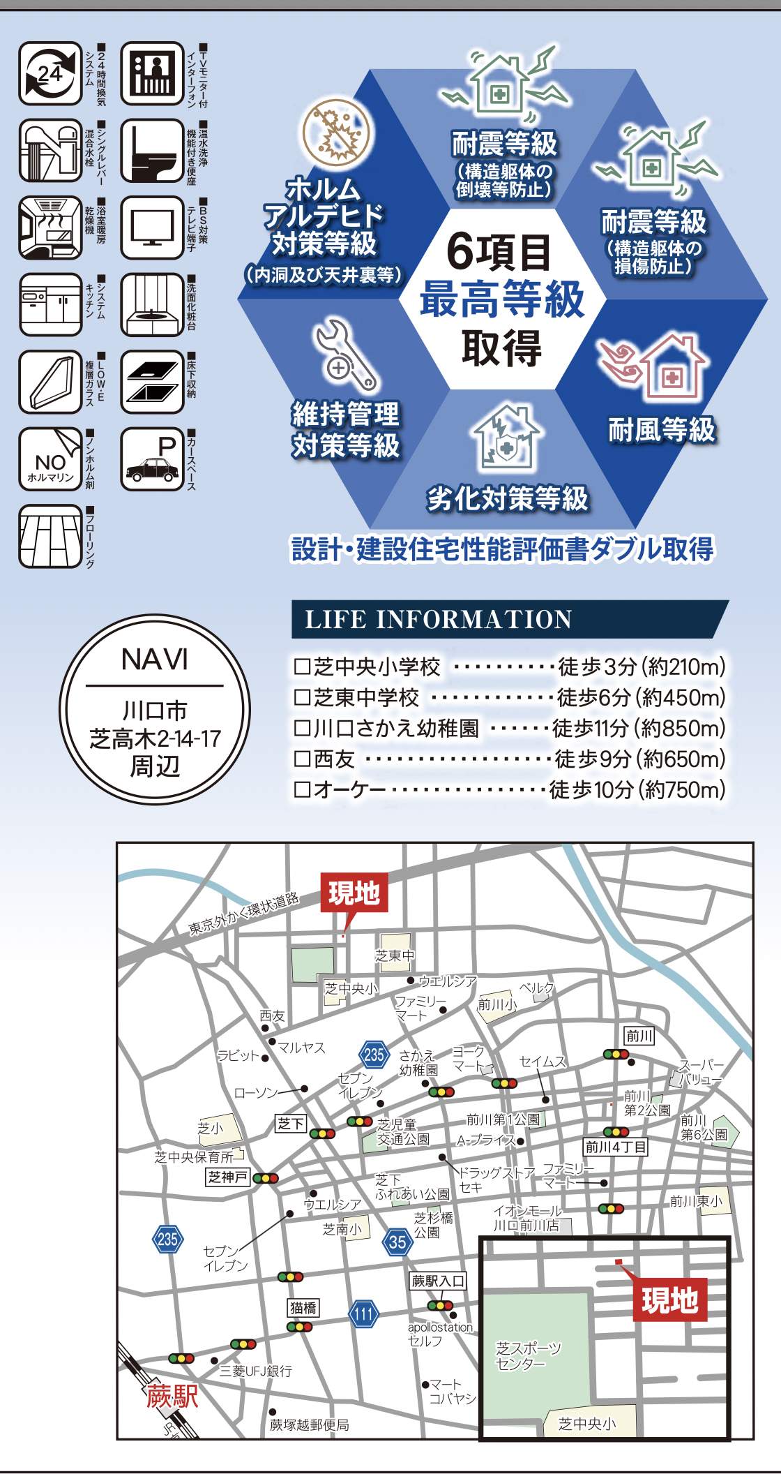 | 交通 | JR京浜東北・根岸線蕨駅 バス(芝中央小学校 乗7分 停歩9分) |