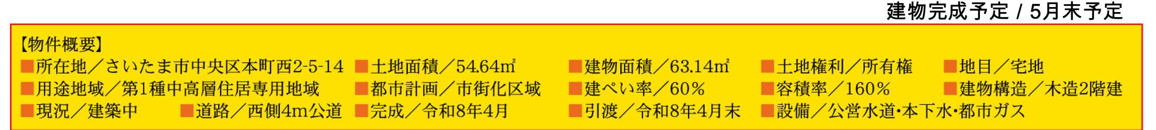 | 所在地 | 埼玉県さいたま市中央区本町西2丁目5-14 新築戸建 仲介手数料無料 3180万円 更にお祝金最大20万円プレゼント付 与野本町駅歩11分 |