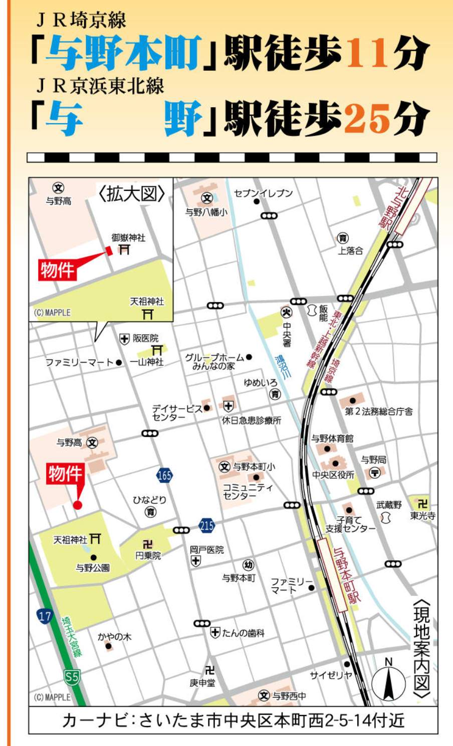 | 交通 | JR埼京線与野本町駅 徒歩11分 JR京浜東北・根岸線与野駅 徒歩25分 |
