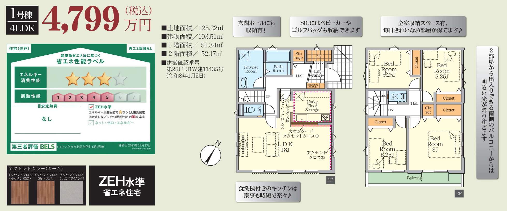 さいたま市北区別所町 新築戸建 仲介手数料無料 4799万円 更にお祝金最大20万円プレゼント付 宮原駅 バス(別所団地 乗18分 停歩2分) 新築戸建