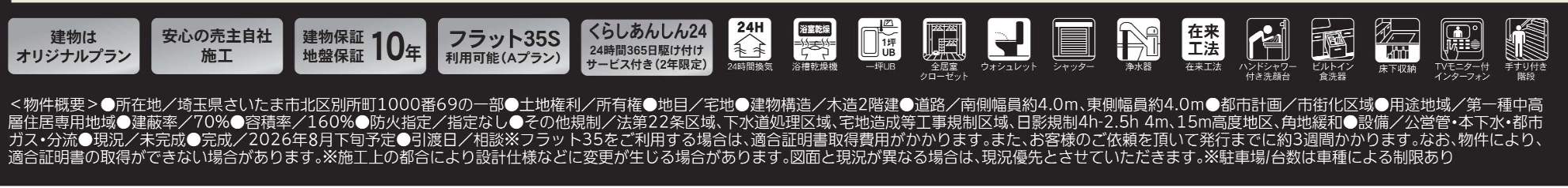 | 所在地 | 埼玉県さいたま市北区別所町1000-69 新築戸建 仲介手数料無料 4799万円 更にお祝金最大20万円プレゼント付 宮原駅歩分 |