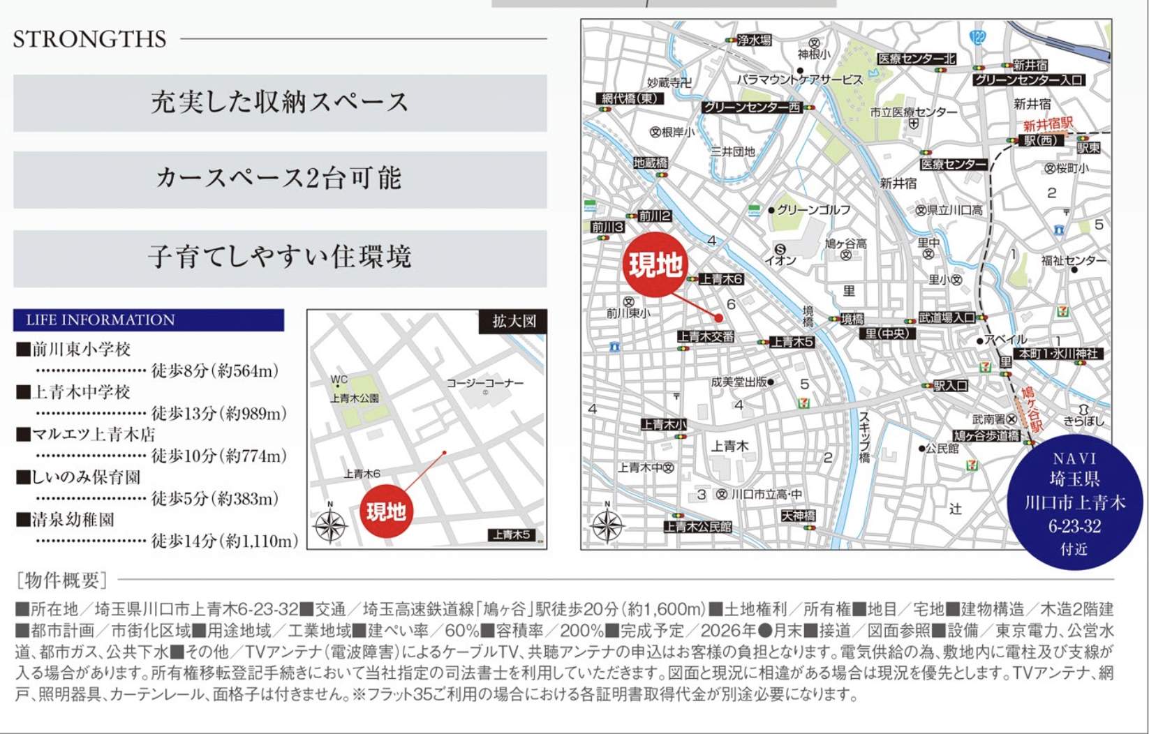 | 所在地 | 埼玉県川口市上青木6丁目23-32 新築戸建 仲介手数料無料 4990万円 更にお祝金最大20万円プレゼント付 鳩ヶ谷駅歩20分 |