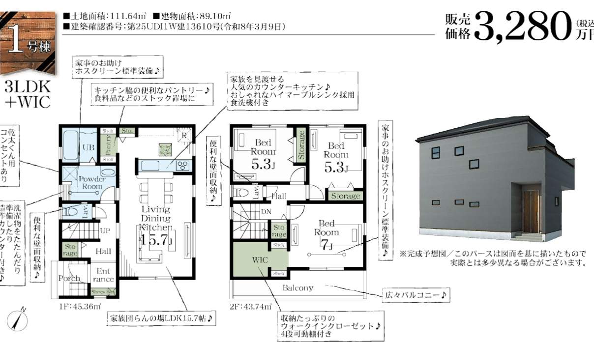 さいたま市岩槻区城町1丁目 新築戸建 仲介手数料無料 3280万円より2棟 更にお祝金最大20万円プレゼント付 岩槻駅 徒歩22分 バス(府内 乗5分 停歩8分) 新築戸建