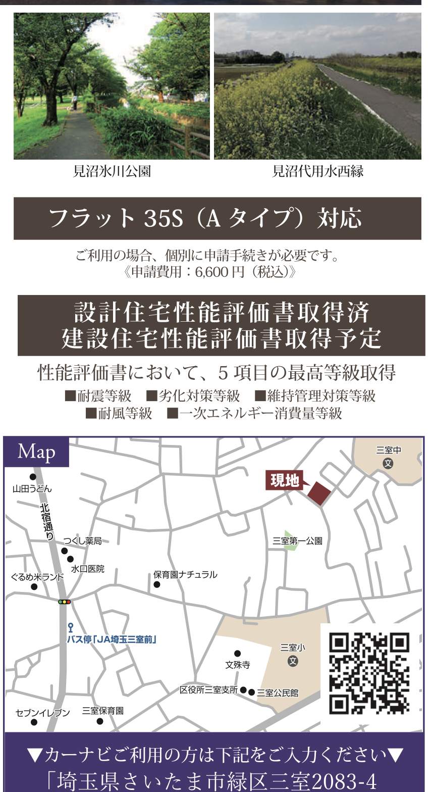 | 所在地 | 埼玉県さいたま市緑区大字三室2083-4 新築戸建 仲介手数料無料 4090万円 更にお祝金最大20万円プレゼント付 北浦和駅歩分 |