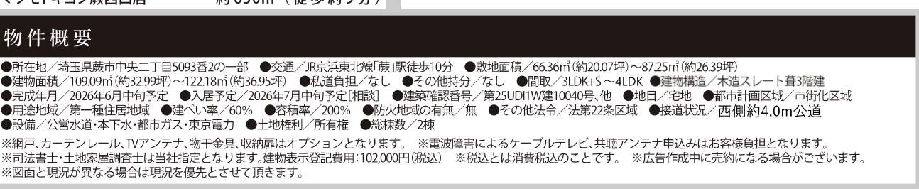 蕨市中央2丁目 新築戸建 仲介手数料無料 6099万円より2棟 更にお祝金最大20万円プレゼント付 蕨駅歩10分 新築戸建