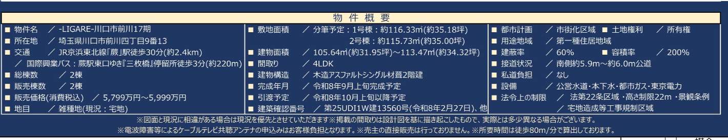 川口市前川4丁目 新築戸建 仲介手数料無料 5799万円より2棟 更にお祝金最大20万円プレゼント付 蕨駅歩30分 新築戸建