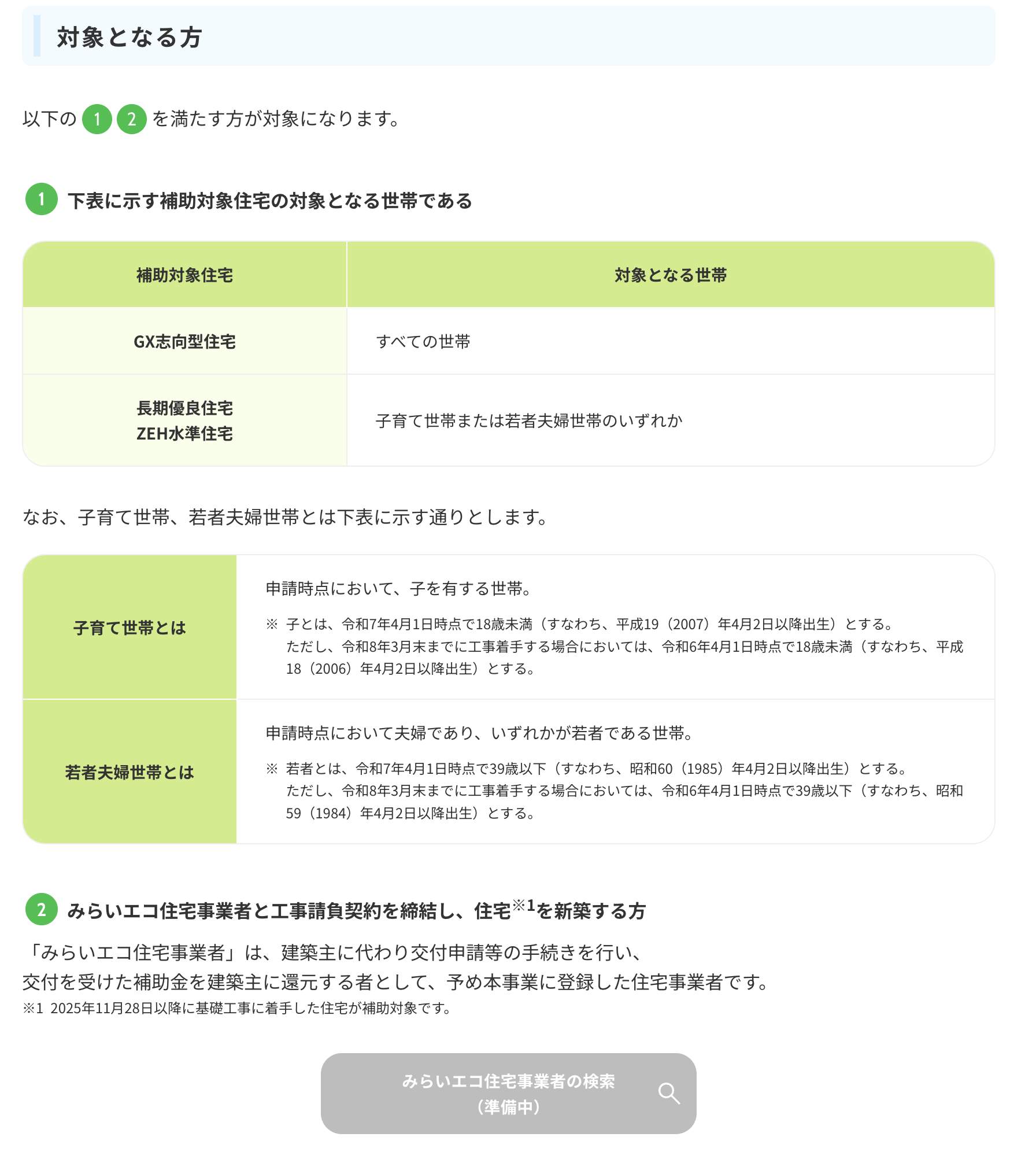 新築戸建の場合、売主が支援事業に登録されている必要と、物件自体も支援事業に登録されていないと支援の適用になりません。物件の適用要件を満たしていても上記がされてない場合は利用不可となります。